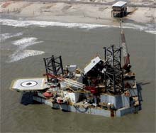 Hurricane Ike hit the Gulf of Mexico where we already have a whole bunch of those high-tech, no-spill, self-cleaning, Finding Nemo-friendly off shore oil rigs. Guess what we learned today?