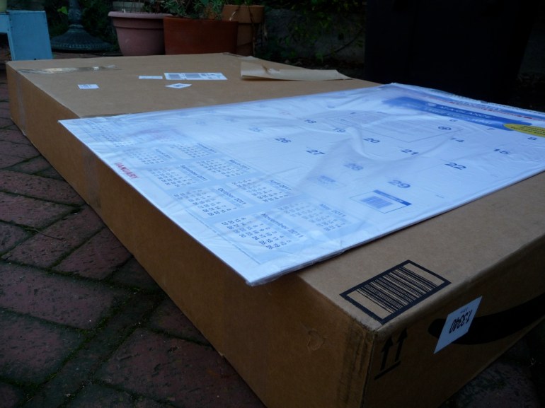 I ordered my new 2011 wall calendar for my office from Amazon.com because they had the best price and free shipping. But I thought that free shipping meant “no cost” not “brain free.” Apparently that’s not the case because Amazon sent me my 2011 calendar in a box big enough to ship a flat screen TV. Check it out: