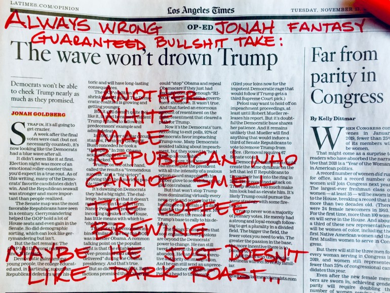 @LATimes Only Thing “Crazy” In @JonahNRO Column Is That You Give Another Unaccomplished,Untalented, Uninteresting White Male Commentator More Space In My Newspaper #JoeTakesOnTheNews November 13, 2018Categories News, News Media, Truth & RealityJonah Goldberg, Los Angeles TimesLeave a Comment on @LATimes Only Thing “Crazy” In @JonahNRO Column Is That You Give Another Unaccomplished,Untalented, Uninteresting White Male Commentator More Space In My Newspaper #JoeTakesOnTheNews Share this: Click to share on X (Opens in new window) X Click to share on Facebook (Opens in new window) Facebook Click to email a link to a friend (Opens in new window) Email More Click to print (Opens in new window) Print Click to share on Reddit (Opens in new window) Reddit Like Loading... Related Published by creativegreenius View all posts by creativegreenius