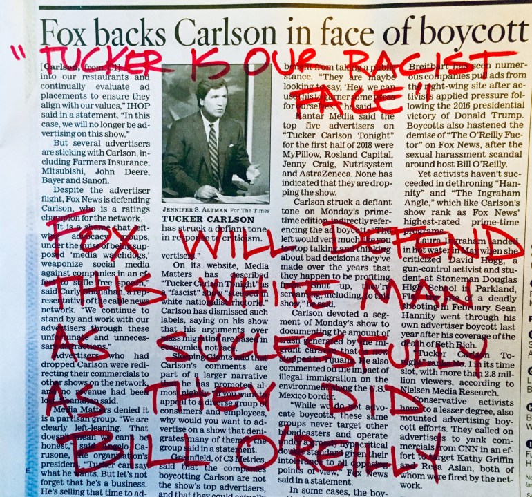 @LATimes I Boiled Your Tucker Carlson Article Down To 18 Words #JoeTakesOnTheNews December 19, 2018Categories News, News Media, racism, Truth & RealityTucker CarlsonLeave a Comment on @LATimes I Boiled Your Tucker Carlson Article Down To 18 Words #JoeTakesOnTheNews Share this: Click to share on X (Opens in new window) X Click to share on Facebook (Opens in new window) Facebook Click to email a link to a friend (Opens in new window) Email More Click to print (Opens in new window) Print Click to share on Reddit (Opens in new window) Reddit Like Loading... Related Published by creativegreenius View all posts by creativegreenius