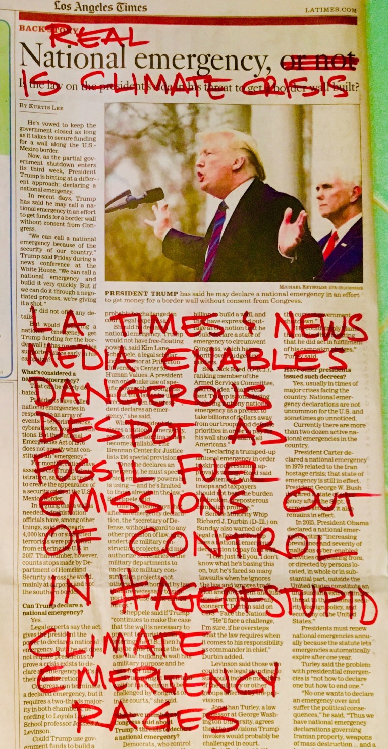 @LATimes Takes The Racist Bait And Treats Phony Wall As Legitimate News While Failing To Cover Climate Crisis #JoeTakesOnTheNews January 8, 2019Categories carbon producers, climate change, environment, environmental justice, environmental racism, fossil fuels, Killer Coal, News, News Media, racism, renewable energy, sea-level rise, Sustainability, Trump, Truth & RealityLeave a Comment on @LATimes Takes The Racist Bait And Treats Phony Wall As Legitimate News While Failing To Cover Climate Crisis #JoeTakesOnTheNews