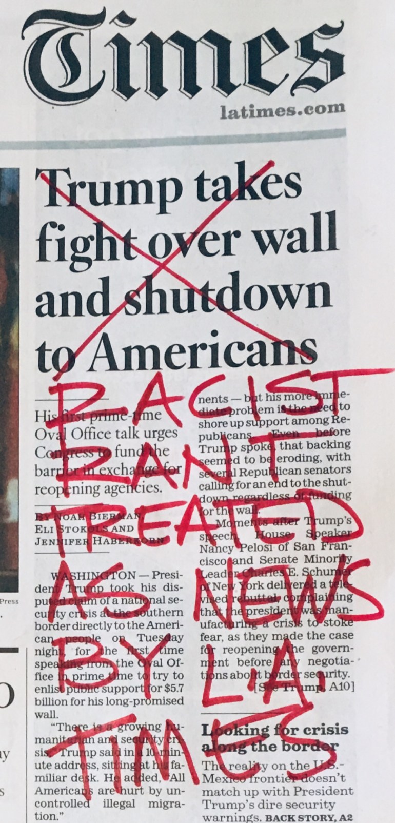 @LATimes Now Has Steve Bannon & Breitbart Writing Its News Headlines, Truth Is Casualty Until #JoeTakesOnTheNews January 9, 2019Categories fascism, News, News Media, politics, Trump, Truth & Reality, white privilegeLos Angeles TimesLeave a Comment on @LATimes Now Has Steve Bannon & Breitbart Writing Its News Headlines, Truth Is Casualty Until #JoeTakesOnTheNews Share this: Click to share on X (Opens in new window) X Click to share on Facebook (Opens in new window) Facebook Click to email a link to a friend (Opens in new window) Email More Click to print (Opens in new window) Print Click to share on Reddit (Opens in new window) Reddit Like Loading... Related Published by creativegreenius View all posts by creativegreenius