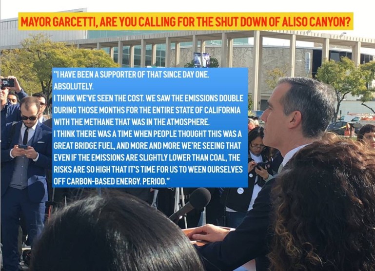 And then, in answer to a question asking if he was also calling for the shutdown of the failed Aliso Canyon gas storage facility Mayor Garcetti said: