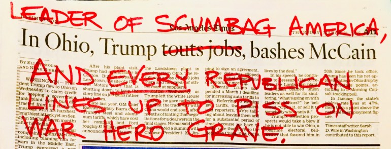 Mouth-Breathing, Knuckle-Dragging Deplorables Cheer Russian Owned #Pussygrabber As GOP Surrenders Its Soul #JoeTakesOnTheNews March 21, 2019Categories corruption, Evil, fascism, News, politics, racism, Russia, Trump, Truth & Reality, white privilegejohn mccain, Los Angeles TimesLeave a Comment on Mouth-Breathing, Knuckle-Dragging Deplorables Cheer Russian Owned #Pussygrabber As GOP Surrenders Its Soul #JoeTakesOnTheNews Share this: Click to share on X (Opens in new window) X Click to share on Facebook (Opens in new window) Facebook Click to email a link to a friend (Opens in new window) Email More Click to print (Opens in new window) Print Click to share on Reddit (Opens in new window) Reddit Like Loading... Related Published by creativegreenius View all posts by creativegreenius