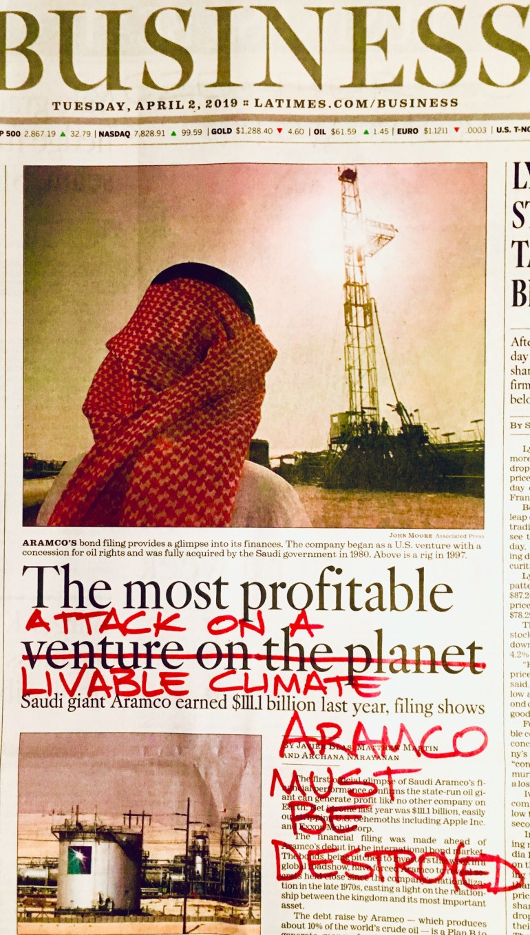 @LATimes Treats Saudi Terrorists Like Successful Business, But Homeland Security Calls For Climate Action #JoeTakesOnTheNews April 2, 2019April 2, 2019Categories carbon producers, climate change, Climate Emergency, Collusion, corruption, environment, environmental justice, environmental racism, fascism, fossil fuels, News, renewable energy, Saving Energy, sea-level rise, solar power, Sustainability, toxic chemicals, Truth & RealityAramco, Los Angeles TimesLeave a Comment on @LATimes Treats Saudi Terrorists Like Successful Business, But Homeland Security Calls For Climate Action #JoeTakesOnTheNews Share this: Click to share on X (Opens in new window) X Click to share on Facebook (Opens in new window) Facebook Click to email a link to a friend (Opens in new window) Email More Click to print (Opens in new window) Print Click to share on Reddit (Opens in new window) Reddit Like Loading... Related Published by creativegreenius View all posts by creativegreenius