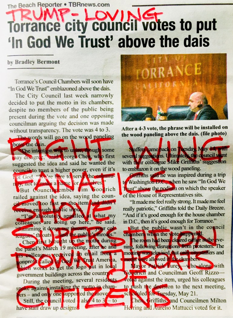 #ToxicTorrance Choking On Pollution From Refinery Kicks The Can To The Man Above To Fix Their Fatal Flaws. Supreme Being Rejects Heathens, “Don’t Put My Name On Your Chamber Of Chumps,” Thunders Big Guy, “Cause I Don’t Trust THEM Especially That Moron Griffiths #JoeTakesOnTheNews