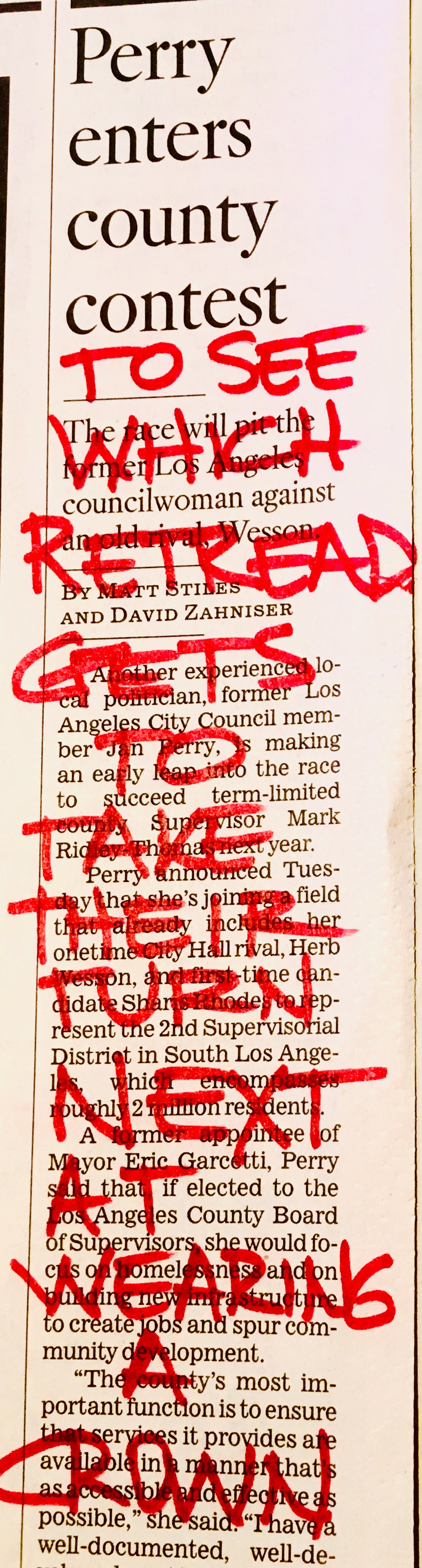 @LATimes You Forgot To Tell Readers That None Of These Past-Their-Prime, Unaccomplished Retreads Have ANY Solutions To LA’s Problems & No Viable Skill Sets To Lead In 21st Century. January 23, 2019Categories campaign, climate change, election, environmental justice, environmental racism, Health, News, News Media, politics, Truth & Reality, VotersLeave a Comment on @LATimes You Forgot To Tell Readers That None Of These Past-Their-Prime, Unaccomplished Retreads Have ANY Solutions To LA’s Problems & No Viable Skill Sets To Lead In 21st Century.