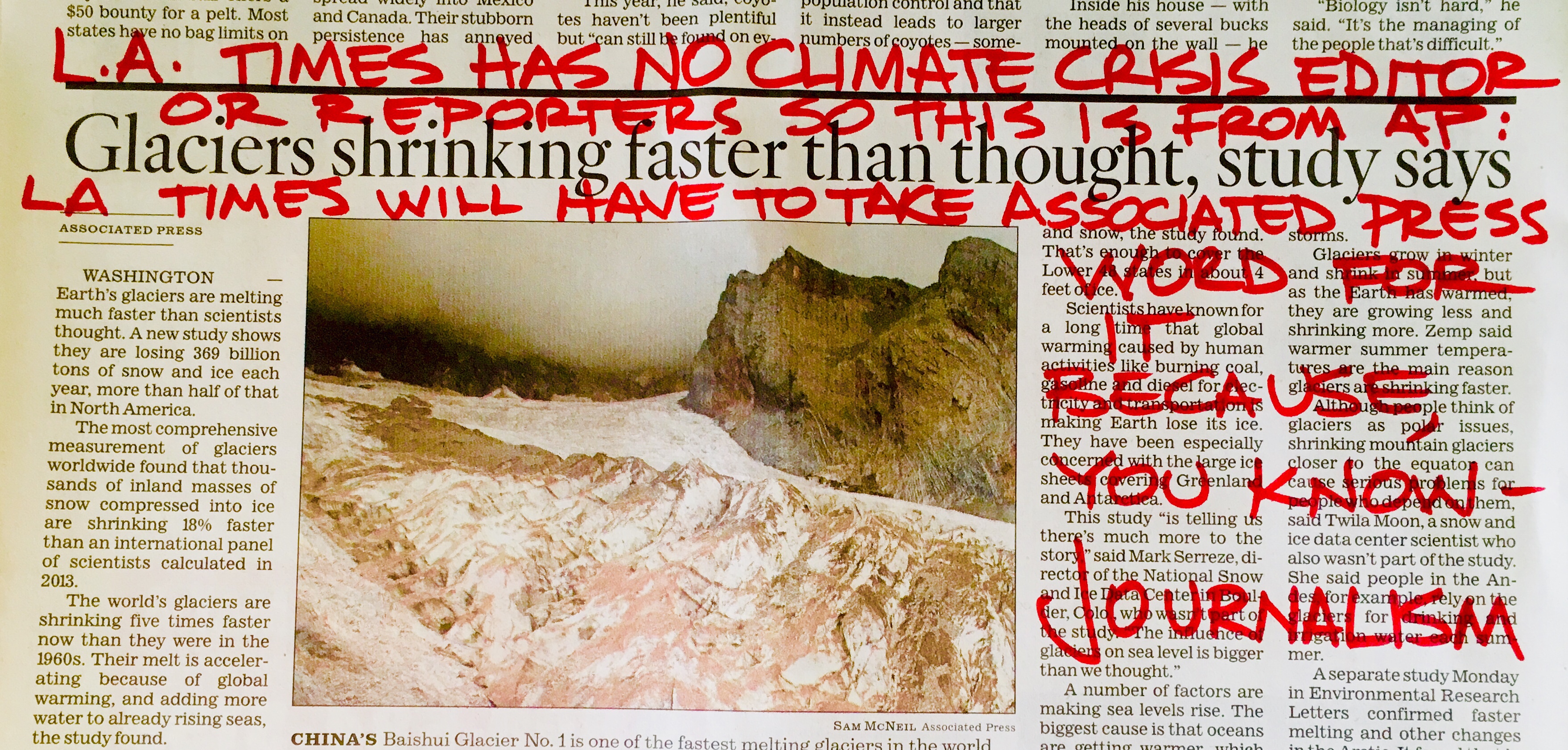 @LaTimes Greenwashes Climate Crisis & Threat To Readers By Claiming Surrender Is “War On Climate” As Los Angelenos Choke On Nation’s Worst Air Pollution #JoeTakesOnTheNews April 28, 2019Categories carbon producers, climate change, Climate Emergency, Distributed Energy Resources, electric cars, environment, environmental justice, environmental racism, fossil fuels, greenwashing, Health, Killer Coal, News, Ocean, politics, renewable energy, sea-level rise, solar power, SustainabilityLeave a Comment on @LaTimes Greenwashes Climate Crisis & Threat To Readers By Claiming Surrender Is “War On Climate” As Los Angelenos Choke On Nation’s Worst Air Pollution #JoeTakesOnTheNews