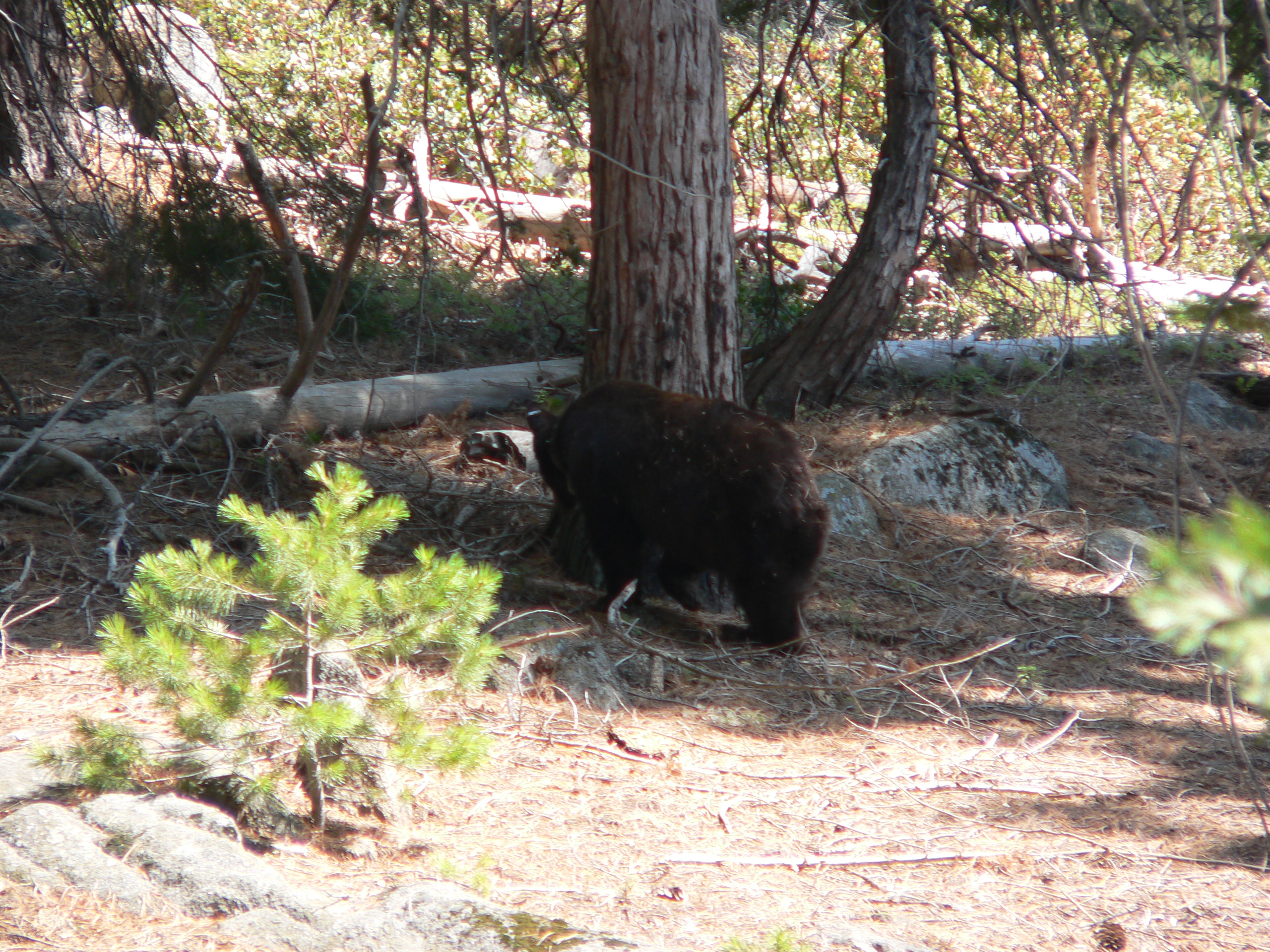 Debra and I stood and watched the bear for a few minutes and then we decided to turn around and go back the way we came. The bear does not care that we are here but apparently the deer we later run into have an issue to pick with us.