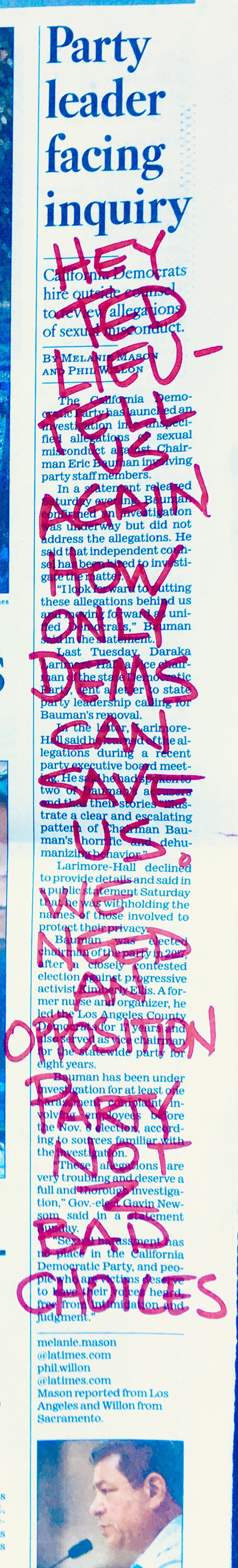 Until Ted proves otherwise, that’s the conclusion I have reached. And in case you’re wondering, I’m a registered Democrat and a member of the Beach Cities Democratic Club, but fellow Democrat Lieu gets zero slack cut on this issue from me.